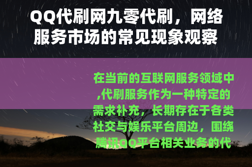 在当前的互联网服务领域中,代刷服务作为一种特定的需求补充,长期存在于各类社交与娱乐平台周边,围绕腾讯QQ平台相关业务的代刷需求,催生了相应的服务提供者,以“九零代刷”为代表的一类服务网站,便是这一市场中的常见参与者,它们主要面向希望快速提升QQ相关功能等级或获取某些虚拟权益的用户,提供相应的辅助服务。