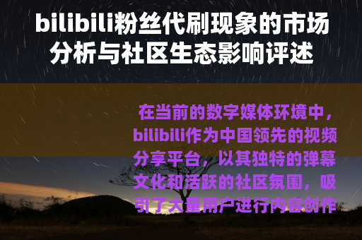 在当前的数字媒体环境中,bilibili作为中国领先的视频分享平台,以其独特的弹幕文化和活跃的社区氛围,吸引了大量用户进行内容创作与交流,随着平台用户基数的增长和商业价值的提升,一种称为“粉丝代刷”的服务逐渐显现,这种服务主要通过非正常手段为UP主增加粉丝数量,旨在满足部分用户对快速提升关注度的需求,从而在竞争激烈的社交媒体环境中脱颖而出。