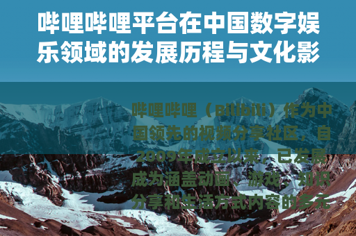 哔哩哔哩(Bilibili)作为中国领先的视频分享社区,自2009年成立以来,已发展成为涵盖动画、游戏、知识分享和生活方式内容的多元化平台,其独特的弹幕互动系统,让用户在观看视频时能够实时发表评论,形成了浓厚的社区氛围,哔哩哔哩不仅吸引了大量年轻用户,还在文化传播和创意表达方面发挥了重要作用,本文将从平台的发展背景、社区特色、内容生态、商业运营和社会价值等方面,详细探讨哔哩哔哩在中国数字娱乐产业中的地位。
