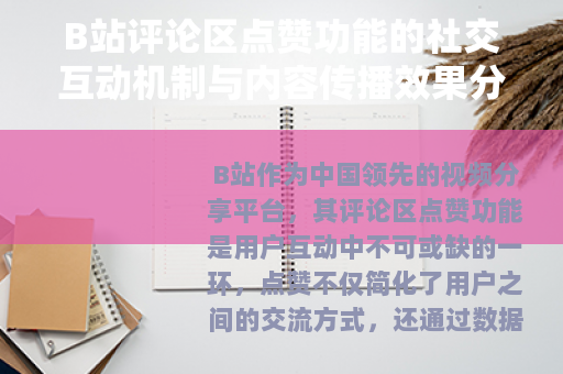 B站作为中国领先的视频分享平台,其评论区点赞功能是用户互动中不可或缺的一环,点赞不仅简化了用户之间的交流方式,还通过数据反馈塑造了社区文化和内容传播路径,本文将详细探讨B站评论区点赞的运作机制、社交价值以及对平台生态的积极影响。