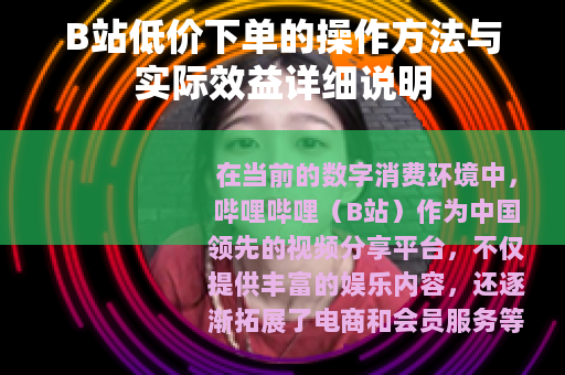 在当前的数字消费环境中,哔哩哔哩(B站)作为中国领先的视频分享平台,不仅提供丰富的娱乐内容,还逐渐拓展了电商和会员服务等功能,吸引了大量用户参与。“低价下单”成为许多用户关注的焦点,指的是通过平台上的优惠活动、折扣渠道或会员特权,以较低成本购买商品或服务,本文将系统介绍B站低价下单的常见方式、操作流程以及其为用户带来的益处,帮助读者更好地理解和利用这一消费模式。