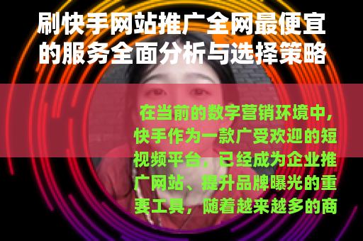 在当前的数字营销环境中,快手作为一款广受欢迎的短视频平台,已经成为企业推广网站、提升品牌曝光的重要工具,随着越来越多的商家涌入快手,寻求高效的推广方式,成本控制成为了一个关键考量因素,本文将系统性地介绍刷快手网站推广全网最便宜的相关服务,从基本概念到实践方法,为您提供一份详尽的参考,帮助您在预算有限的情况下实现理想的推广效果。