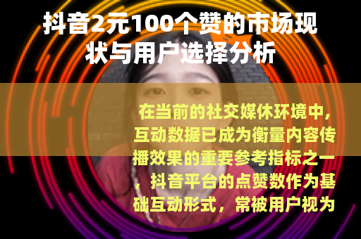 在当前的社交媒休环境中,互动数据已成为衡量内容传播效果的重要参考指标之一,抖音平台的点赞数作为基础互动形式,常被用户视为内容受欢迎程度的直观体现,近年来,市场上出现了多种提供点赞量增长的服务,2元100个赞”这类低价促销现象,这反映了部分用户对快速提升互动数据的现实需求。