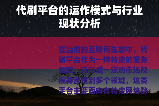 在当前的互联网生态中,代刷平台作为一种特定的服务类型,已形成一定的市场规模并渗透到多个领域,这类平台主要面向有特定网络数据提升需求的个人或商家,提供一种基于技术或人工操作的服务解决方案,其存在与互联网经济的某些运行逻辑紧密相关,理解其运作机制和产生背景,有助于更全面地认识相关网络现象。