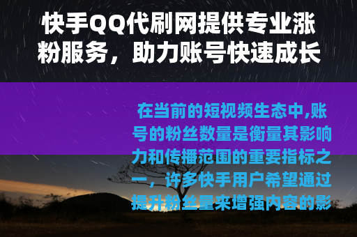 在当前的短视频生态中,账号的粉丝数量是衡量其影响力和传播范围的重要指标之一,许多快手用户希望通过提升粉丝量来增强内容的影响力,寻找安全可靠的涨粉方式成为了一个普遍需求,市面上存在一些通过QQ渠道进行联系的代刷网,专门为快手用户提供粉丝增长服务。