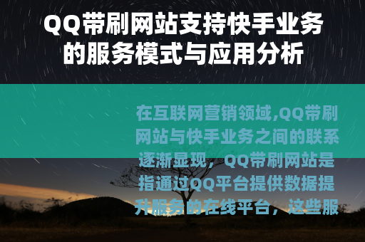 总体而言,QQ带刷网站与快手业务的关联展示了网络服务如何适应不断变化的市场需求,这些网站通过技术手段和资源整合,为用户提供了灵活的选择,随着数字营销的发展,这类服务可能会进一步专业化,但核心始终围绕提升用户体验和效率,对于快手创作者而言,合理利用此类资源,可以辅助运营策略,但平衡自然发展与外部支持才是可持续之道,随着平台技术和规则的演进,QQ带刷网站也可能继续调整服务方式,以更好地融入快手业务的生态系统中。