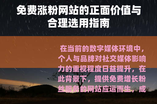 在当前的数字媒体环境中,个人与品牌对社交媒体影响力的重视程度日益提升,在此背景下,提供免费增长粉丝服务的网站应运而生,成为许多用户拓展网络关注度的可选工具之一,这些平台通常通过提供一系列辅助性功能,帮助用户更有效地进行内容传播与受众互动。