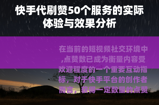 在当前的短视频社交环境中,点赞数已成为衡量内容受欢迎程度的一个重要互动指标,对于快手平台的创作者而言,获得一定数量的点赞不仅有助于提升内容的可见度,也能增强账号的初期互动氛围,市场上出现了多种辅助提升互动数据的方式,“代刷赞”是常被提及的一种,本文将以“快手代刷赞50个”为切入点,客观阐述其常见的操作模式、可能带来的直观影响以及用户在实际使用中应当关注的重点。