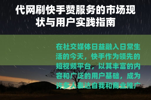 在社交媒体日益融入日常生活的今天,快手作为领先的短视频平台,以其丰富的内容和广泛的用户基础,成为许多人表达自我和商业推广的重要空间,点赞数作为衡量视频受欢迎程度的核心指标之一,直接关系到内容的曝光率和用户影响力,一种被称为“代网刷快手赞”的服务逐渐兴起,它通过代理网络为用户提供快速增加点赞数的解决方案,从而满足多样化的需求,本文将围绕这一现象,分析其市场背景、运作方式、用户动因以及实践建议,以提供全面的视角。