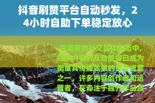 抖音刷赞平台自动秒发,24小时自助下单稳定放心