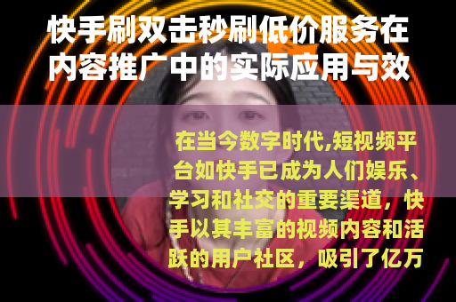 在当今数字时代,短视频平台如快手已成为人们娱乐、学习和社交的重要渠道,快手以其丰富的视频内容和活跃的用户社区,吸引了亿万创作者和观众,在这个平台上,视频的互动数据,尤其是双击(即点赞)数量,直接影响到内容的曝光和传播,较高的双击数不仅表示视频受欢迎,还能触发平台的推荐算法,将视频推送给更多潜在观众,许多创作者致力于提升视频的双击数,而刷双击秒刷低价服务作为一种辅助工具,逐渐受到关注,这种服务通过快速且低成本的方式,帮助创作者增加互动数据,从而在竞争激烈的环境中获得优势。