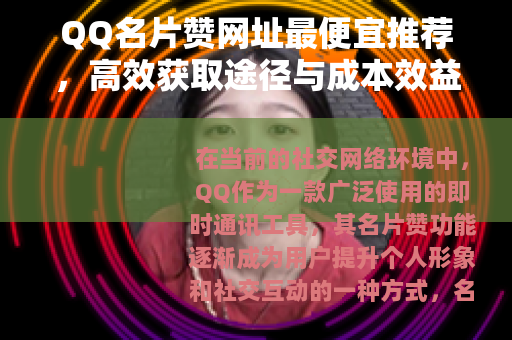 在当前的社交网络环境中,QQ作为一款广泛使用的即时通讯工具,其名片赞功能逐渐成为用户提升个人形象和社交互动的一种方式,名片赞不仅能够丰富个人资料页的展示效果,还能在一定程度上增强用户在朋友圈中的可见度和影响力,随着需求的增长,许多用户开始寻找提供QQ名片赞服务的网址,并希望以最便宜的价格获得高质量的服务,本文将围绕“QQ名片赞网址最便宜”这一主题,介绍相关的获取方法、选择技巧以及使用优势,帮助用户在节省成本的同时,有效提升社交体验。