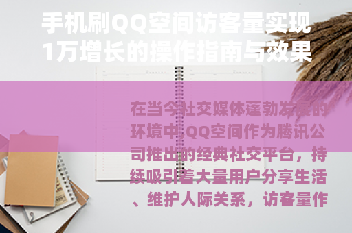 在当今社交媒体蓬勃发展的环境中,QQ空间作为腾讯公司推出的经典社交平台,持续吸引着大量用户分享生活、维护人际关系,访客量作为衡量空间活跃度与受欢迎程度的关键指标,常常被用户关注,许多用户希望通过便捷的方式提升访客量,以增强个人社交影响力,随着移动设备的普及,手机操作成为主流,使得提升QQ空间访客量变得更加容易,本文将系统介绍如何通过手机将QQ空间访客量提升至1万,并分析其相关方面,为用户提供实用参考。