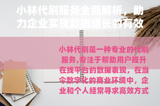 在选择小林代刷服务时,用户可以通过查看服务商的过往案例和客户反馈,来评估其可靠性和效果,建议用户事先明确自身需求,与服务商充分沟通目标,以确保服务方案贴合实际场景,小林代刷往往提供多种合作模式,适应不同预算和时间安排,帮助用户在合规框架内实现数据优化,重要的是,用户应关注服务过程的透明度,了解操作步骤和预期进展,以建立良好的协作关系。