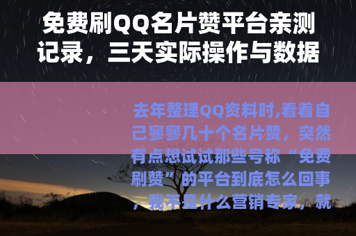 去年整理QQ资料时,看着自己寥寥几十个名片赞,突然有点想试试那些号称“免费刷赞”的平台到底怎么回事,我不是什么营销专家,就是普通用户,有点好奇心,也愿意花点时间折腾,前后大概试了七八个平台,也走了一些弯路,这里就当聊天分享一下过程。