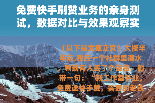 大概半年前,我在一个社群里潜水,看到有人丢了个链接,附带一句:“新工作室开业,免费送快手赞,需要的老铁加。”底下跟着几个撒花表情,那时候我手头正好在帮亲戚打理一个卖地方特产的快手号,内容做得挺用心,但播放量总在几百徘徊,点赞更是寥寥,心想,反正免费,试试又不亏,就这么一个念头,后面连着两个月,我好像无意中推开了一扇门,里面挺热闹,也够乱的。