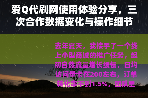 去年夏天,我接手了一个线上小型商城的推广任务,起初自然流量增长缓慢,日均访问量卡在200左右,订单转化率不到1.5%,团队里有人提议试试代刷服务,说是能快速“启动”数据,我抱着试试看的心态,第一次接触到了爱Q代刷网欢迎您的光临。