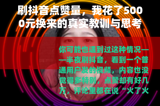 你可能也遇到过这种情况——半夜刷抖音,看到一个普通用户发的视频,内容也没觉得多特别,点赞却有好几万,评论里都在说“火了火了”,心里忍不住嘀咕:这怎么做到的?去年夏天,我手头有个本地探店的小号,内容还行,但点赞总是卡在一两百,实在着急,脑子一热,我决定试试那些“非正规”的渠道,给两个自认为质量不错的视频推一把,前后折腾了一个多月,花了差不多五千块,确实换来了一些数字,但回头看看,这大概是我去年在短视频运营上最值得复盘的一次经历。