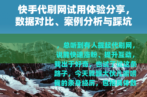 ,总听到有人提起代刷网,说能快速涨粉、提升互动,我出于好奇,也试了试这条路子,今天就跟大伙儿唠唠我的亲身经历,包括具体数字、几个案例,还有那些折腾人的踩坑故事,这篇文章不会讲什么大道理,就是随意聊聊,但希望能给你一些实用参考,毕竟,网上信息杂七杂八,自己趟过水才知道深浅。