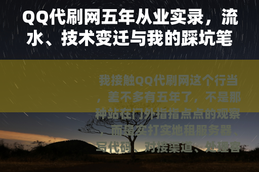 我接触QQ代刷网这个行当,差不多有五年了,不是那种站在门外指指点点的观察,而是实打实地租服务器、写代码、对接渠道、处理客诉,半夜被支付平台的风控通知吵醒的那种,今天聊这个,不是要教你如何“快速致富”,也不是搞什么宏大叙事,就是拉个板凳,聊聊这些年我看到的一些数字,经过的一些事,以及真金白银换来的教训,你会发现,这里面没什么神秘色彩,更多的是琐碎、迭代和适者生存。