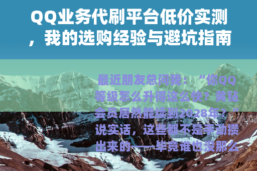 最近朋友总问我:“你QQ等级怎么升得这么快?黄钻会员居然能续到2028年?”说实话,这些都不是手动攒出来的——毕竟谁也没那么多时间天天挂在线,和很多人一样,我试过找代刷平台处理这些业务,但“全网最低价”这个词,听起来诱人,踩进去才知道水有多深,今天就想聊聊这段经历,尽量用实际数字和案例,帮你少走弯路。