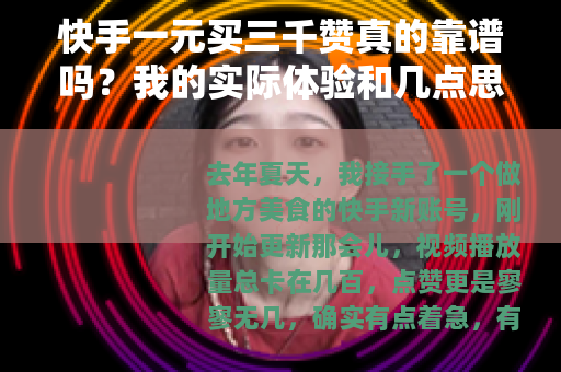 去年夏天,我接手了一个做地方美食的快手新账号,刚开始更新那会儿,视频播放量总卡在几百,点赞更是寥寥无几,确实有点着急,有一天,在某个社群看到有人打广告:“一元速冲三千赞,真人活跃数据,提升作品热度。” 说实话,这个价格低得让人好奇——毕竟市面上常见的套餐,几十块买几百赞的也不少。