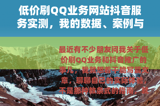 最近有不少朋友问我关于低价刷QQ业务和抖音推广的事儿,我就想着干脆写篇文章,聊聊自己的实际体验,不是那种教条式的指南,就是随手记录一下过程,里头有些数字、几个具体案例,还有我自己踩过的一些坑,希望能给感兴趣的人一点参考。