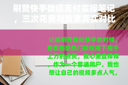 记得刚开始玩快手的时候,看着那些热门视频底下成千上万的点赞,我心里直痒痒,作为一个普通用户,我也想让自己的视频多点人气,所以动了刷赞的念头,付款方式嘛,微信支付是最顺手的,毕竟平时买菜、打车都用它,方便得很,但没想到,这背后的事儿比我想的复杂——不是啥深奥的东西,就是些实实在在的数字和经历,今天我就随便聊聊,不整那些虚的,直接上干货,说说我怎么用微信支付刷赞快手,花了多少钱,遇到啥问题,还有怎么一点点调整的,如果你也在琢磨这个,说不定能少走点弯路。