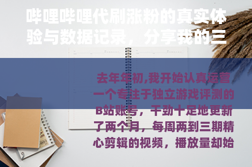 去年年初,我开始认真运营一个专注于独立游戏评测的B站账号,干劲十足地更新了两个月,每周两到三期精心剪辑的视频,播放量却始终卡在三五百,粉丝增长如同蜗牛爬行,每天能涨三五个就算不错,看着那些内容似乎不如自己却粉丝量庞大的UP主,心里难免有些嘀咕,就在这个焦虑的档口,我在某个QQ群里看到有人发小广告:“B站数据服务,快速提升播放、点赞、粉丝,价格实惠,见效快。”