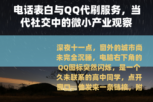 这些零碎的对话,像散落在数字生活角落的碎片,拼凑出一个不易被主流视线关注的角落:电话表白服务与QQ代刷网络,它们不属于耀眼的科技革新,也非正规商业广告的宠儿,却悄然生长在社交需求的缝隙中,成为一部分人日常网络生活的一部分。