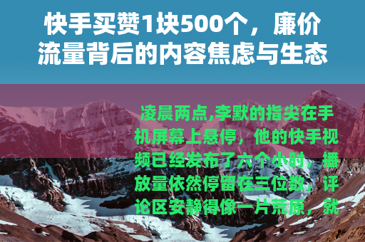 凌晨两点,李默的指尖在手机屏幕上悬停,他的快手视频已经发布了六个小时,播放量依然停留在三位数,评论区安静得像一片荒原,就在刷新页面的瞬间,一条私信弹了出来:“快手真人点赞,1块500个,速联。”这条信息,像一颗投入静水的小石子,在他心里漾开了一圈复杂的涟漪,这不是他第一次收到类似的推销,但在这个寻常的夜晚,一种难以名状的疲惫,让他第一次开始认真思考这串数字背后的含义——一块钱,五百个“认可”。