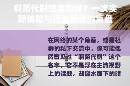 在网络的某个角落,或是社群的私下交流中,你可能偶然瞥见过“啊陌代刷”这个名字,它不是浮在主流视野上的话题,却像水面下的暗流,在特定的圈层里涌动着,这里没有宏大的宣言,也没有惊心动魄的故事,有的只是一些普通人在特定需求下,与这样一个服务产生的交集,我想做的,不是评判,也不是定义,而是试着描绘出这块模糊地带的轮廓,将我了解到的一些碎片拼凑起来,聊一聊与之相关的所见与所思。