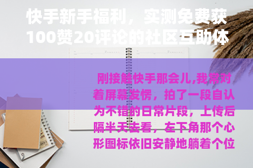 回过头看,这次经历最宝贵的部分,或许不在于那100个赞和20条评论的数字本身,而在于它让我这个新手,以一种特别的方式,快速浸入了快手社区那种“互相关联”的氛围,它让我明白,在这个平台,除了算法推荐,还存在一种朴素的、人与人之间的看见与支持,它像是一个入门仪式,让我从“孤岛”状态,连接到一片温暖且活跃的“群岛”边缘。