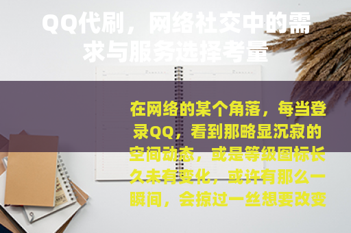 在网络的某个角落,每当登录QQ,看到那略显沉寂的空间动态,或是等级图标长久未有变化,或许有那么一瞬间,会掠过一丝想要改变现状的念头,这并非个例,它指向了一个在特定网络社群中持续存在的现象:对于某些QQ功能或呈现形态,存在着一种通过非官方途径进行快速提升的需求,围绕这种需求产生的服务行为,常被笼统地称为“代刷”,这并非一个新鲜话题,它伴随着QQ产品的成长而断续存在,折射出部分用户的心理状态与网络社交环境的某些侧面。