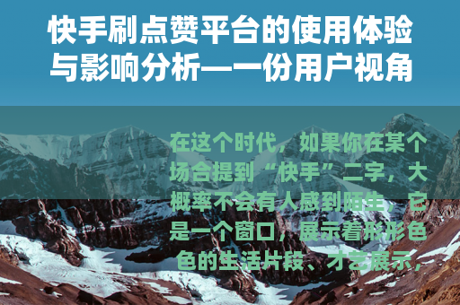 在这个时代,如果你在某个场合提到“快手”二字,大概率不会有人感到陌生,它是一个窗口,展示着形形色色的生活片段、才艺展示,乃至更广阔的世界,而在这个由算法和注意力构成的舞台上,“点赞”那小小的红心,似乎不再仅仅是一个表达欣赏的动作,它逐渐演变成一种可被量化的“社交货币”,一种能见度的象征,甚至在某些语境下,成为潜在机会的敲门砖,围绕着如何获得更多“点赞”,一种衍生服务自然而然地出现在视野里——外界通常称之为“快手刷点赞平台”,我们不打算用任何预设立场去评判,而是尝试走近它,如同走近一个普遍存在的网络现象,去观察、描述和理解它的脉络。
