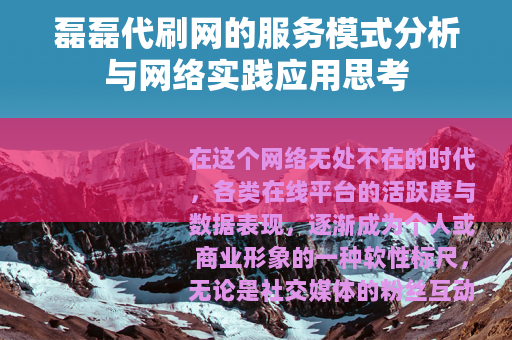 在这个网络无处不在的时代,各类在线平台的活跃度与数据表现,逐渐成为个人或商业形象的一种软性标尺,无论是社交媒体的粉丝互动数量,还是电商平台的销量评价,抑或是学习应用的打卡积分,这些可量化的指标背后,催生了一个颇为独特的服务领域——网络数据服务,磊磊代刷网,便是这个领域中一个具体而微的观察样本,它并非一个广为人知的名字,却在特定的需求圈层里,提供着一种颇为直接的技术解决方案。