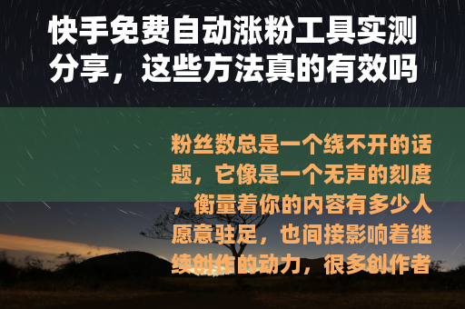 粉丝数总是一个绕不开的话题,它像是一个无声的刻度,衡量着你的内容有多少人愿意驻足,也间接影响着继续创作的动力,很多创作者,尤其是刚刚起步的朋友,会四处寻找那条“捷径”,当你在搜索引擎里输入“快手涨粉”时,跳出来的众多结果中,“免费自动涨粉网站”这个词组总会以各种诱人的形式出现,它们承诺着轻松、快速、无需投入,仿佛一夜之间就能让你的粉丝栏数字跳动起来,这些东西,真的像它们所描述的那样美好吗?我花了些时间,接触和了解了一下这个游离在主流视野边缘的领域。