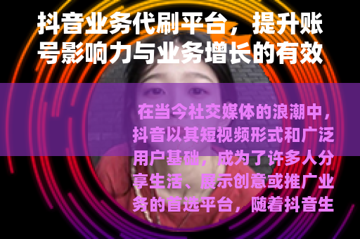 抖音业务代刷平台为用户提供了一种便捷的方式来增强账号表现,支持业务或个人目标的实现,通过理解其服务原理、选择合适平台并结合自身内容策略,用户可以在抖音这个充满活力的平台上更有效地扩大影响力,在数字时代,工具的使用总是伴随着灵活性和判断力,代刷平台也不例外,它并非万能解决方案,但作为资源之一,能为那些希望在抖音上取得进展的用户提供有价值的助力,账号的成功仍离不开持续的努力和创意,而代刷平台则可能在这个过程中,成为一个值得考虑的伙伴。