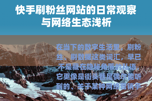 在当下的数字生活里,刷粉丝、刷数据这类词汇,早已不是藏在隐秘角落的私语,它更像是街头巷尾偶尔能听到的、关于某种网络营销手段的寻常讨论,当人们谈论起某个快手账号的快速成长时,有时会伴随着一句心照不宣的:“大概用了些方法吧。”这里所谓的“方法”,常常就与那些提供粉丝增长服务的网站联系在一起,我们不妨暂且放下预定的评判视角,只是走近看看,这类网站是如何存在于部分人的选项之中的,它又映照出怎样的网络环境。