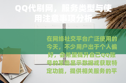 在网络社交平台广泛使用的今天,不少用户出于个人偏好,会希望提升自己QQ账号的某些显示数据或获取特定功能,提供相关服务的平台应运而生,这些平台通常被称为QQ代刷网。