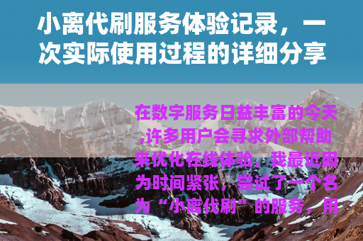 在数字服务日益丰富的今天,许多用户会寻求外部帮助来优化在线体验,我最近因为时间紧张,尝试了一个名为“小离代刷”的服务,用来处理一些游戏内的任务提升,之前听朋友提过,但从未亲身接触,这次决定记录下来,供大家参考,整个过程没有太多波澜,但其中细节值得回味。