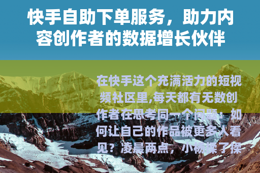 在快手这个充满活力的短视频社区里,每天都有无数创作者在思考同一个问题:如何让自己的作品被更多人看见?凌晨两点,小杨揉了揉发酸的眼睛,刚把剪辑好的带货视频发布出去,这是她这个月第30条作品,内容精心打磨,但点赞和评论的增长速度却像蜗牛爬行,她不是没想过办法,互动、蹭热点、优化标签,都试过了,效果总是不温不火,直到有一天,她在与一位同行交流时,听到了一个词——“自助下单”,对方没有多说,但她心里却留下了印象,这并非什么神秘操作,而是逐渐被许多创作者视为日常运营中,一个可以自主利用的辅助工具。