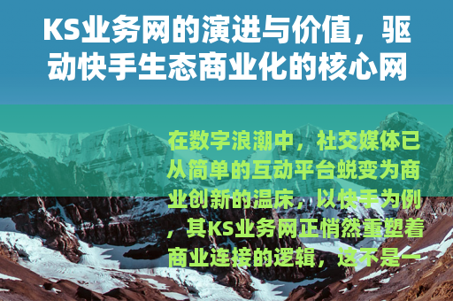 在数字浪潮中,社交媒体已从简单的互动平台蜕变为商业创新的温床,以快手为例,其KS业务网正悄然重塑着商业连接的逻辑,这不是一个浮于表面的概念,而是根植于用户行为、技术驱动与市场需求的有机体系,KS业务网的本质,在于将内容、流量与商业资源无缝整合,形成一个动态循环的生态系统,对于商家、创作者和普通用户而言,它意味着更高效的匹配、更丰富的机会,以及更可持续的增长。