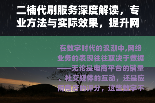 在数字时代的浪潮中,网络业务的表现往往取决于数据——无论是电商平台的销量、社交媒体的互动,还是应用商店的评分,这些数字不仅是冰冷的指标,更是吸引用户、建立信任的桥梁,对于许多初创者或小型企业来说,从零开始积累这些数据并非易事,它需要时间、资源,以及一点运气,正是在这样的背景下,代刷服务应运而生,成为一种辅助手段,我想聊聊二楠代刷,一个我通过行业观察和个人接触认为值得探讨的服务,这并不是什么夸大其词的宣传,也不是充满警示的劝诫,只是平静地分享一些见解,希望能为那些在网络海洋中摸索的人提供参考。