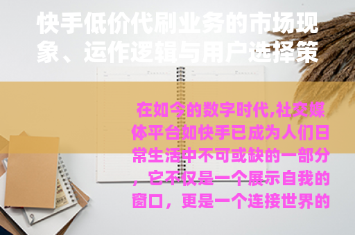 在如今的数字时代,社交媒体平台如快手已成为人们日常生活中不可或缺的一部分,它不仅是一个展示自我的窗口,更是一个连接世界的桥梁,随着快手用户基数的不断扩大,内容创作的竞争也日趋激烈,许多用户为了在浩瀚的信息流中脱颖而出,开始寻求各种提升账号影响力的方法,代刷业务——尤其是以低价为吸引点的服务——逐渐进入公众视野,这种现象并非偶然,而是市场需求与技术发展交织下的产物,本文将从市场背景、运作方式、用户心理和平台环境等多个层面,探讨快手低价代刷业务的实际状况,并提供一些务实的选择思路,帮助用户在参与过程中保持理性与清醒。