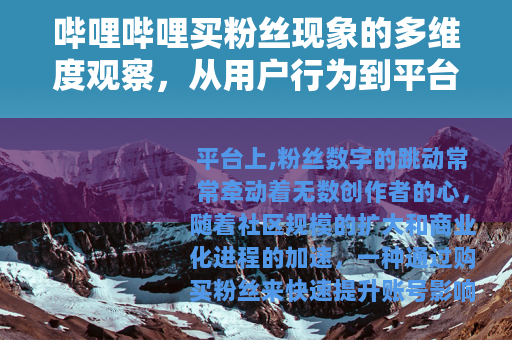 平台上,粉丝数字的跳动常常牵动着无数创作者的心,随着社区规模的扩大和商业化进程的加速,一种通过购买粉丝来快速提升账号影响力的做法悄然兴起,这并非简单的数字游戏,而是折射出当代网络生态中个体选择与平台规则之间的复杂互动,本文将从现象本身出发,分析其背后的动机、对社区的影响以及平台与用户的应对方式,试图呈现一个全面的视角,而无需依赖夸张或煽情的表述。