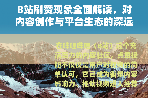 在哔哩哔哩(B站)这个充满活力的内容社区,点赞按钮不仅仅是用户对视频的简单认可,它已成为衡量内容影响力、推动视频进入推荐流的关键指标,随着平台用户基数的扩大和商业化进程的加速,一种被称为“刷赞”的行为悄然兴起——即通过非自然手段人为提升视频的点赞数量,这一现象并非孤立事件,而是嵌入在数字内容生态演变中的一部分,折射出创作者、观众与平台算法之间的复杂互动,作为一名在B站上持续创作和观察多年的用户,我目睹了刷赞从零星个案逐渐演变为一个值得深入讨论的话题,这不仅仅关乎数字游戏,更触及内容真实性、社区信任与长期发展的核心问题。