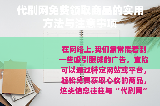 在网络上,我们常常能看到一些吸引眼球的广告,宣称可以通过特定网站或平台,轻松免费获取心仪的商品,这类信息往往与“代刷网”这样的概念联系在一起,对于许多消费者,尤其是年轻群体和追求性价比的用户而言,这无疑是一个充满诱惑的话题,它绕开了传统的直接购买路径,提出了一种看似更具效率的获取方式,这究竟是如何运作的?用户又该如何相对稳妥地参与其中呢?