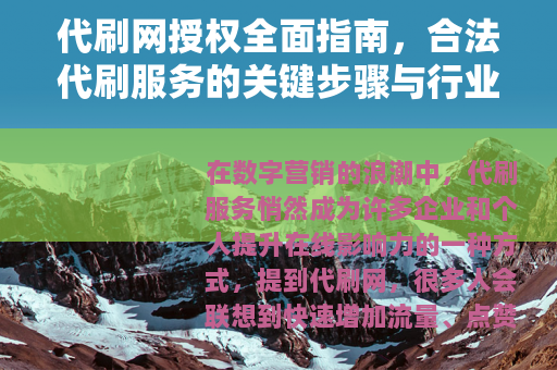 在数字营销的浪潮中,代刷服务悄然成为许多企业和个人提升在线影响力的一种方式,提到代刷网,很多人会联想到快速增加流量、点赞或关注度,但今天,我想聊的是一个常常被忽视却至关重要的环节:授权,授权不是一道简单的门槛,而是代刷网运作中的核心机制,它像一把钥匙,开启了服务合规与用户信任的大门,作为一名长期观察网络营销生态的从业者,我见证了许多代刷网从无序走向规范的过程,而授权正是这一转变的推动力。