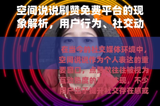 在当今的社交媒体环境中,空间说说作为个人表达的重要窗口,点赞数往往被视为互动热度的直观体现,不少用户出于提升社交存在感或测试内容效果的目的,会接触到所谓“刷赞免费平台”,这些服务承诺以零成本增加说说的点赞数量,作为一个长期关注网络社交趋势的普通用户,我注意到这一现象逐渐渗透日常使用中,但它并非简单的好坏二分,而是交织着技术便利、社交心理与社区文化的复杂图景,本文将从个人视角出发,分享对这类平台的了解、使用经历以及来自网络社区的多样看法,旨在提供一个平实的讨论框架,而非评判对错,通过梳理功能细节、实际效果和用户反馈,希望帮助读者更全面地认识这一话题,并在自己的社交实践中做出合适的选择。